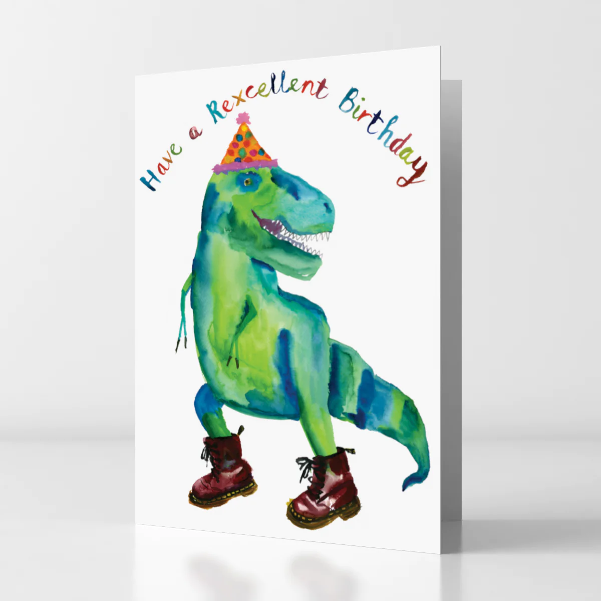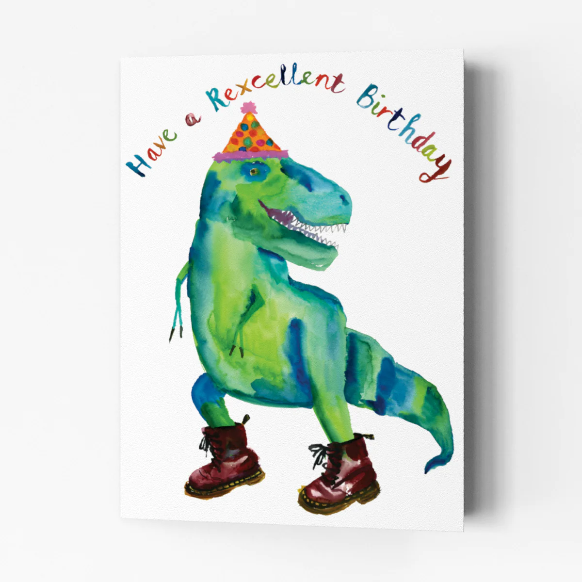 This Rexcellent Dinosaur Birthday Card from artist Rosie Webb has been made with love in Bristol, UK. It is a premium quality greetings card printed on 300gsm FSC certified matte paper and wrapped in a 100% compostable vegetable starch sleeve. Envelope included.