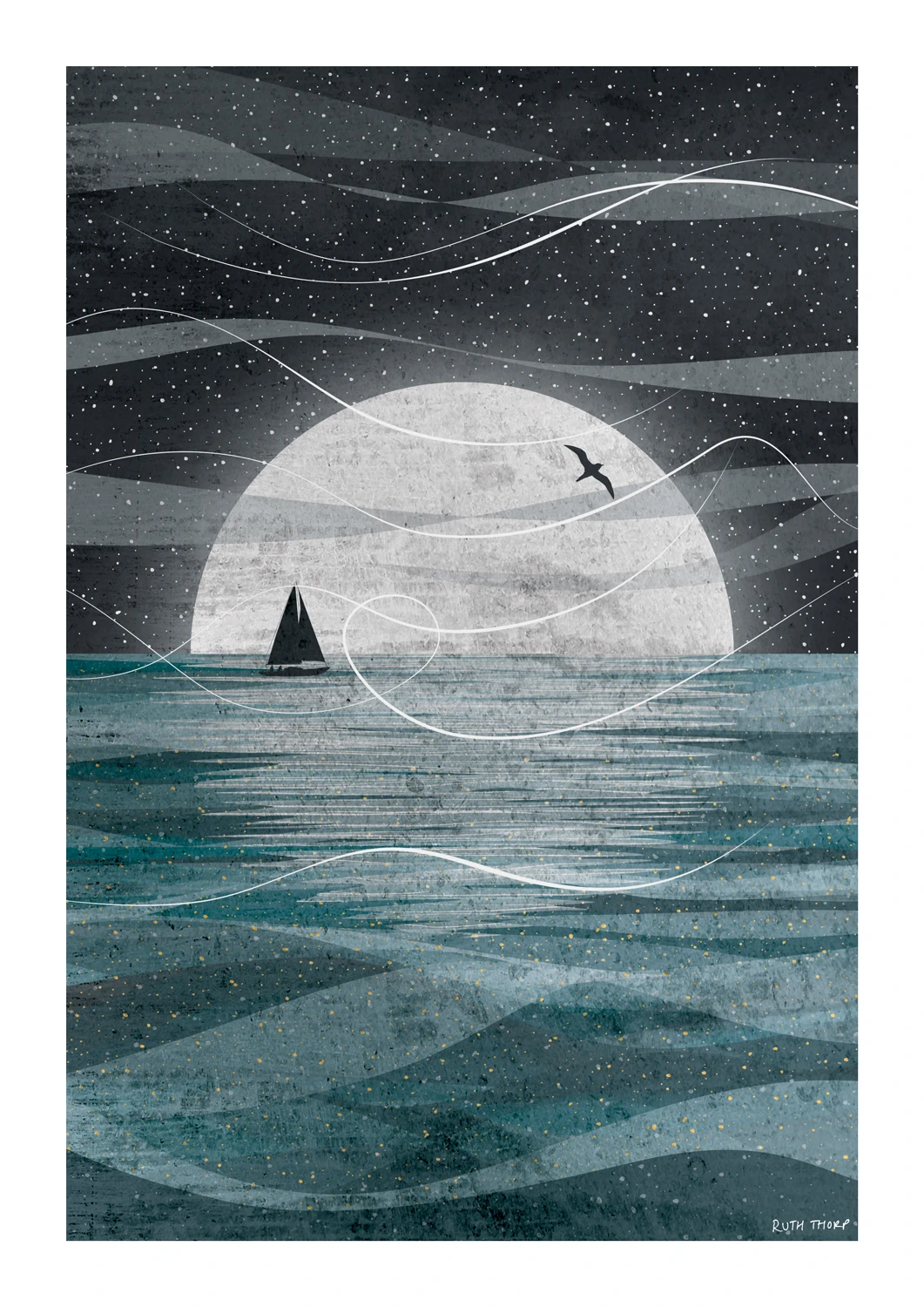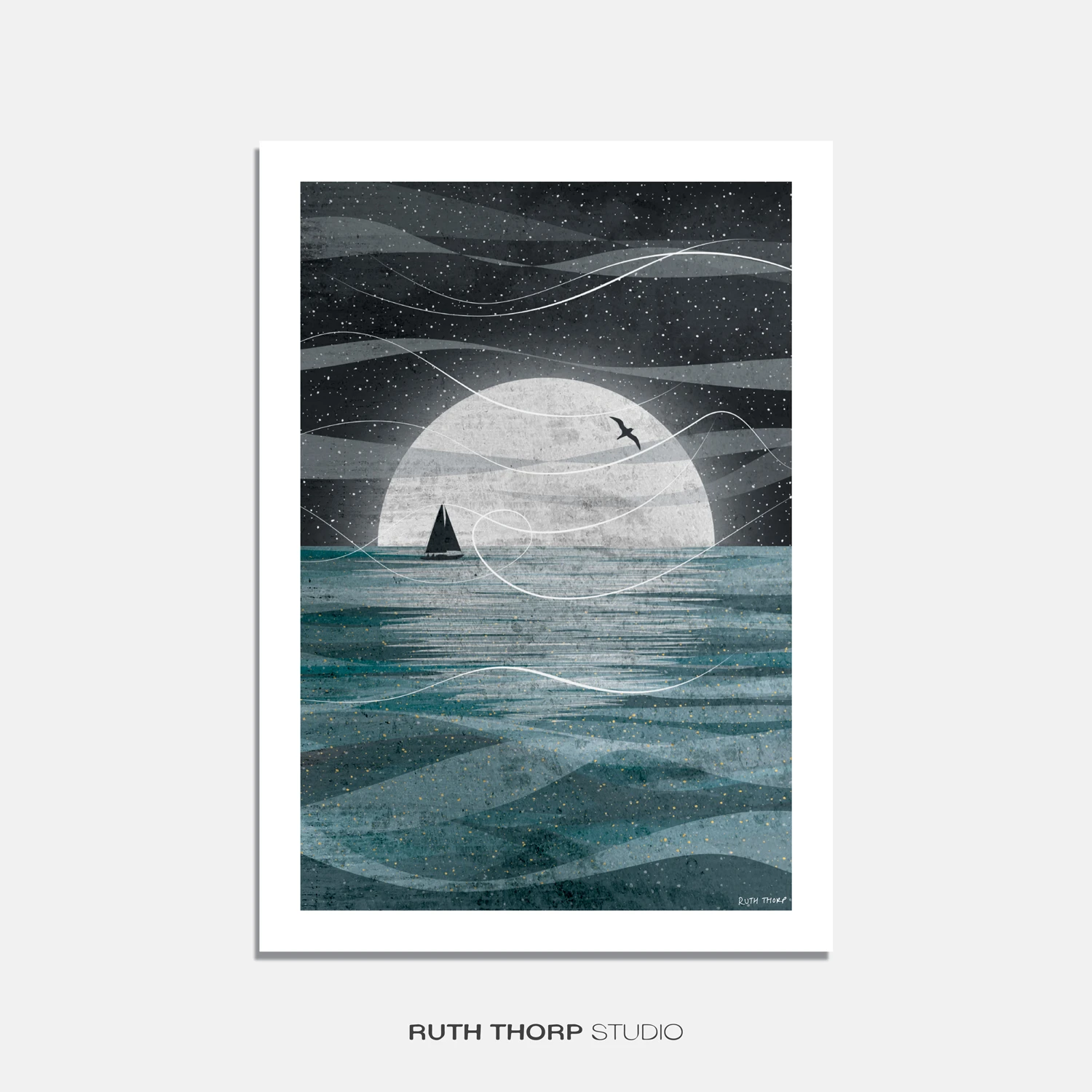 This Sail on the Moon art print by Ruth Thorp Studio is just one of her beautiful illustrations that form part of a series of Ocean prints. These prints would make a perfect gift for family and friends or a lovely addition to your own home. There are six prints in this collection which can be mixed and matched to create a lovely wall display.