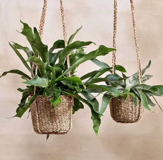 Try mixing your hanging planters for an eclectic feel: How about the Nkuku Mahika hanging planter or the Nkuku Matamba hanging planter?