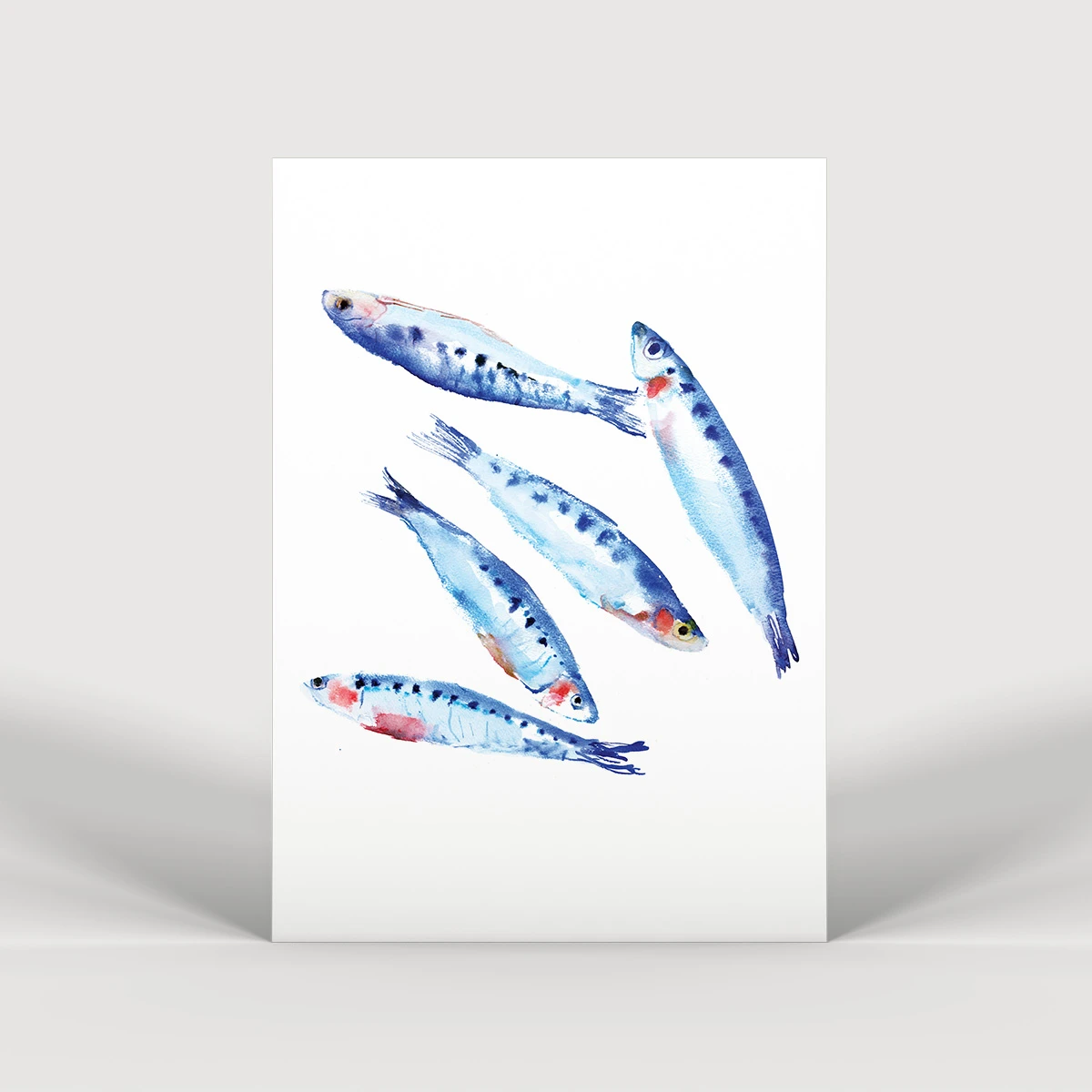 This lovely limited edition Sardines art print is by independent artist Rosie Webb. Rosie is a watercolour artist who creates her paintings in a loose and expressive way that incorporates a lightness of touch with humour. The result is lovely quirky and charming animal prints that are perfect for brightening up the home.