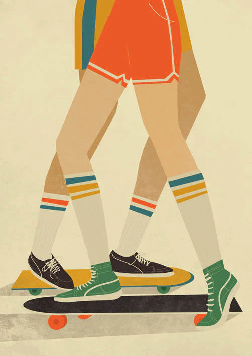 This Skateboarding greetings card is the perfect card for a skateboarder. Based on 70’s California skateboarding and their fashion.