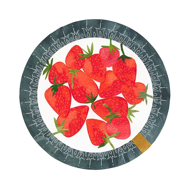This lovely Strawberries Little Plate print is by graphic designer and illustrator Sarah Derry Wilson who created bright collages inspired by natural food and produce. This print of Lemons forms part of her Fruit collection and would be ideal print for a kitchen.