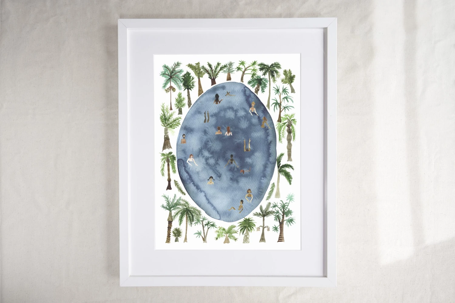 This is a wonderful limited edition wild swimming print by Hattie Buckwell. Hattie is an artist working in Bristol, England. She primarily works in watercolour and this is a print of her original watercolour painting of a wild swim. A lovely tropical print that would add a touch of lush colour, a sense of adventure and a desire to just go and swim wild.
