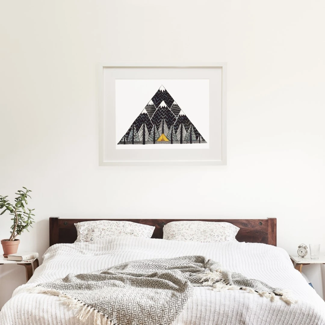This is a wonderful limited edition Tent Mountain art print by Hattie Buckwell. Hattie is an artist working in Bristol, England. She primarily works in watercolour and this is a print of her original watercolour painting Tent Mountain. Inspire your sense of adventure with this lovely print from Hattie’s Explore series of paintings.