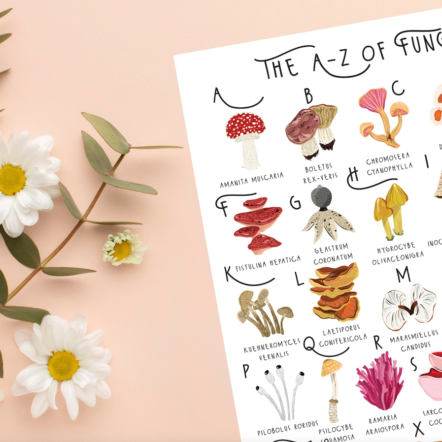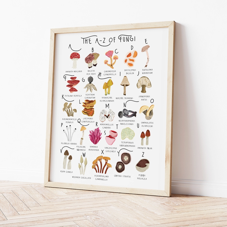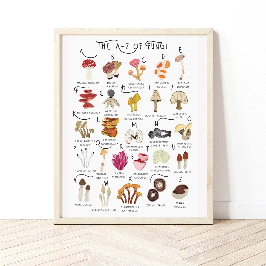 This is a beautiful, high quality digital print of an original ‘The A-Z of Fungi’ Poster print, by artist Bea Baranowska. There are over 25 different alphabet prints to pick from.