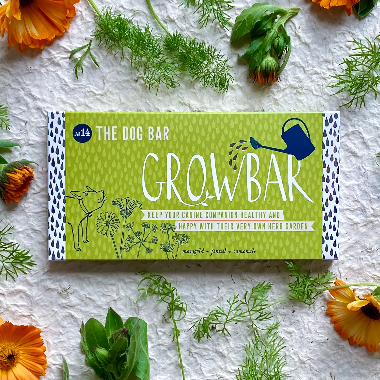 Fennel aids digestion and deters fleas, marigold helps heal irritated skin, and gentle camomile soothes and calms, as well as being a natural doggy de-wormer! This nifty Growbar makes a thoughtful gift or fun family project. All you’ll need is a small container, water and a warm, sunny spot on the windowsill. Within 6-8 weeks the seedlings will be ready to plant into the ground or into pots.