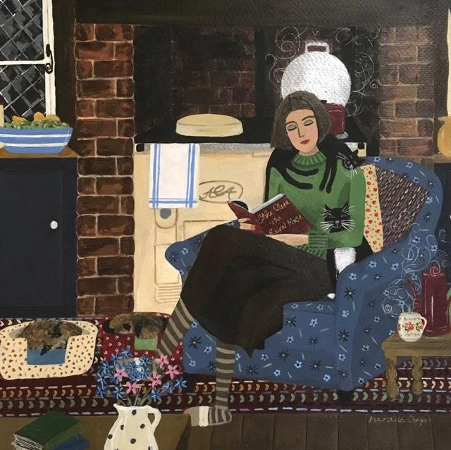 This card design has been reproduced from an original painting of the same name by artist and printmaker Marcella Cooper. Marcella is an artist who is inspired by nature and her surroundings living in rural Suffolk in a 16thc thatched cottage. In her work home takes centre stage and she is inspired by time spent pottering around the cottage, cooking, reading, gardening and walking in the beautiful countryside. She uses her interiors and the everyday objects for inspiration. Simple chores and taking time to be still and present in the moment are reflected in her work. There is great beauty in simple things and celebrating living slowly.
