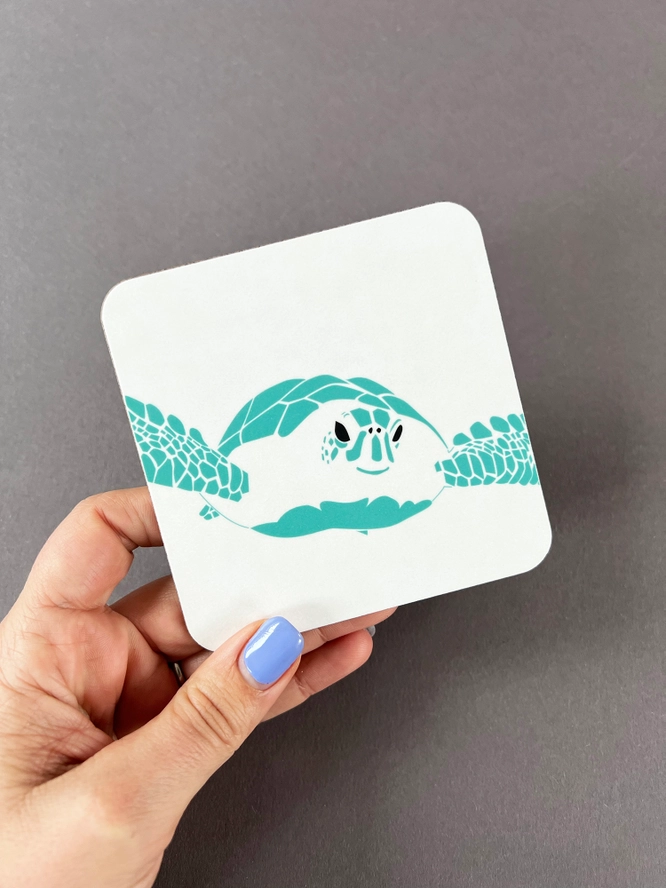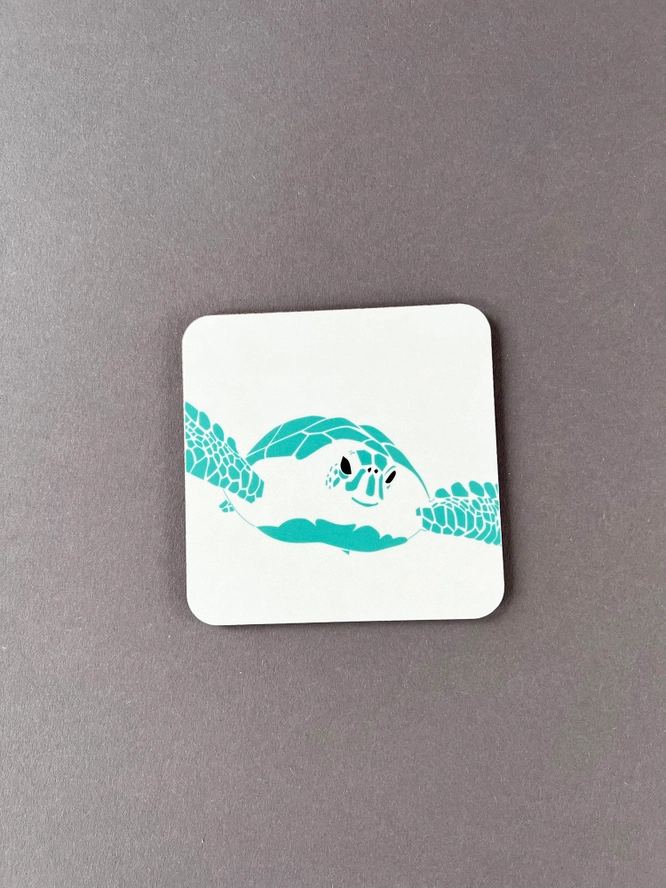Penguin Ink’s Turtle Coaster is printed in black.. It has been made in the UK.