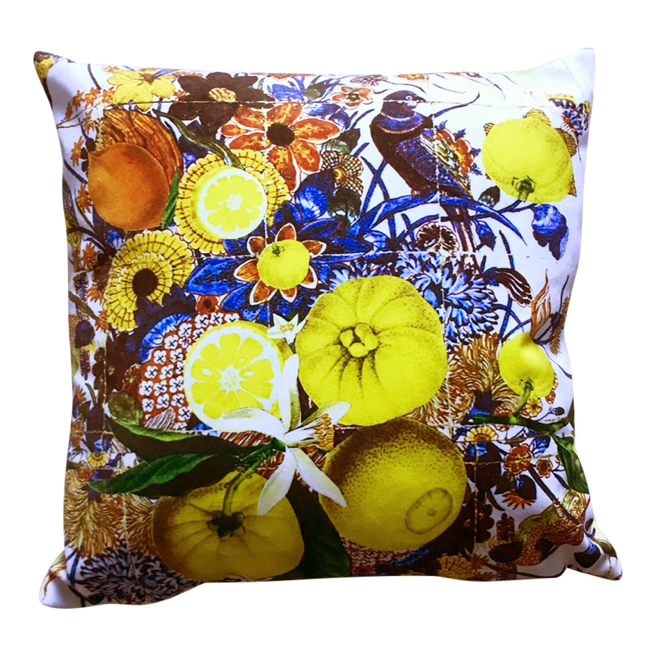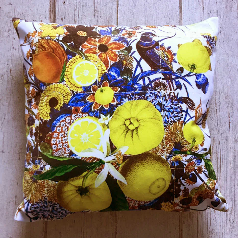 Just arrived in store this stunning new small velvet Limoncello cushion designed by Diana Wilson Arcana featuring her brand new design. The cushion measures 40cm x 40cm and has a plain lemon yellow velvet back.
