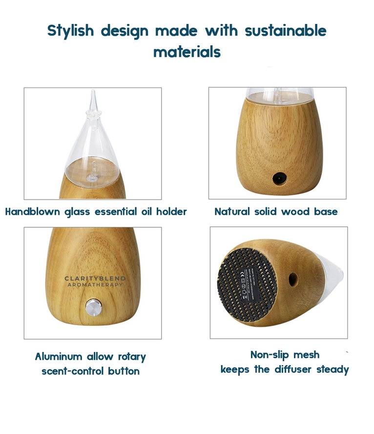 This beautiful hand-crafted nebulising diffuser from Clarity Blend Aromatherapy is a sustainable kit – The diffuser is plastic-free and uses clever technology without the need for water or heat.