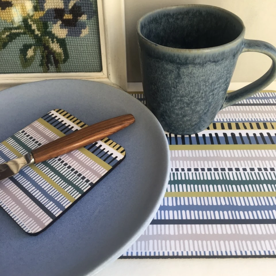 These woven stripe placemats come in a set of 4 and would make a stylish addition to your table or a great gift. There are matching coasters also available. Designed and produced in the UK for a small independent maker. The placemats have a matt finish and are backed by good quality cork.