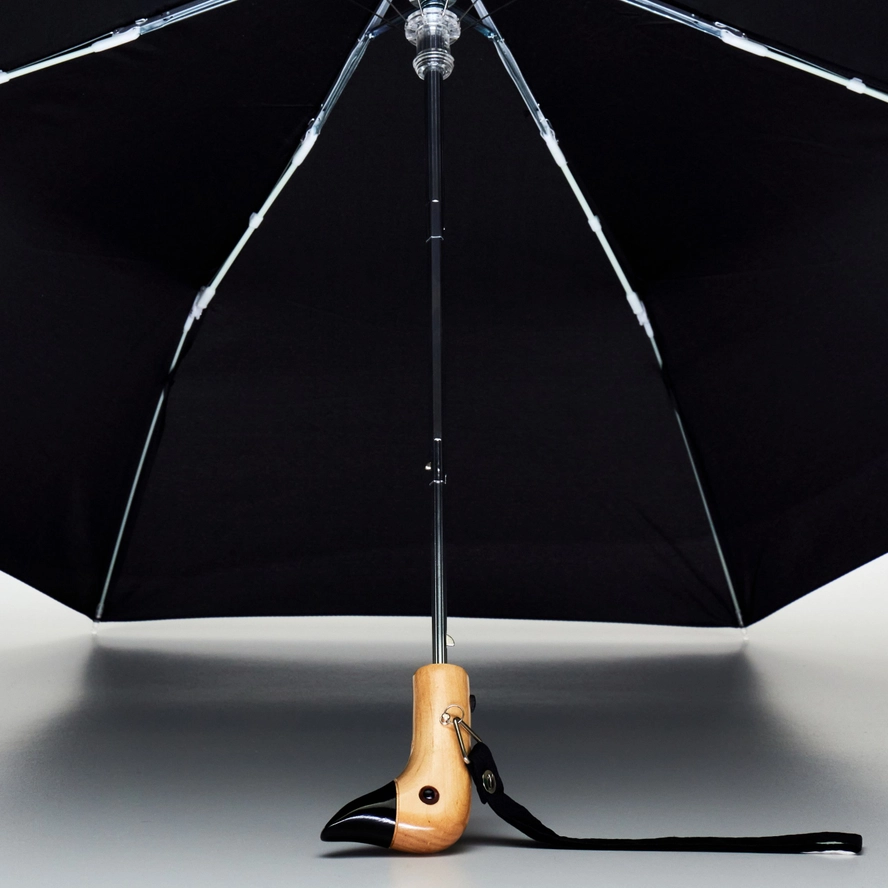 It is a beautifully made umbrella with its distinctive duck head handle made from sustainably sourced birch. It is also made from one solid piece of wood giving it extra strength and durability.